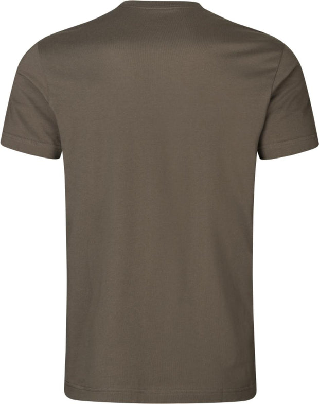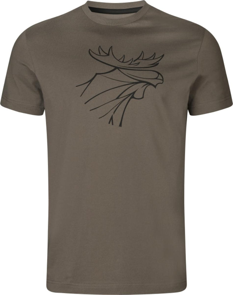 The short-sleeve Härkila graphic T-shirt is made from soft, brushed, stretchy, 100% cotton with an attractive hunting scene print on the chest and a contrast colour at the nape. The T-shirt has a standard fit.