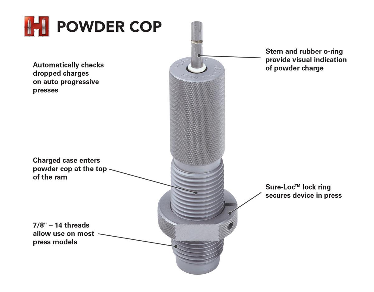 Install on your progressive press after the powder drop station to automatically check dropped charges. Checking powder charges on your progressive press can be difficult, and is sometimes ignored, even though it’s a smart practice. Hornady® uses a similar device on our own ammo manufacturing presses. It won’t replace careful attention, but helps monitor the reloading process. Works with all powder types and cartridges.
