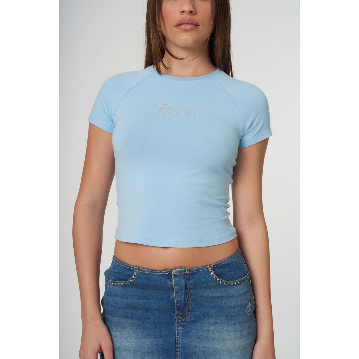Juicy Couture Shrunken Diamante T-Shirt Powder Blue