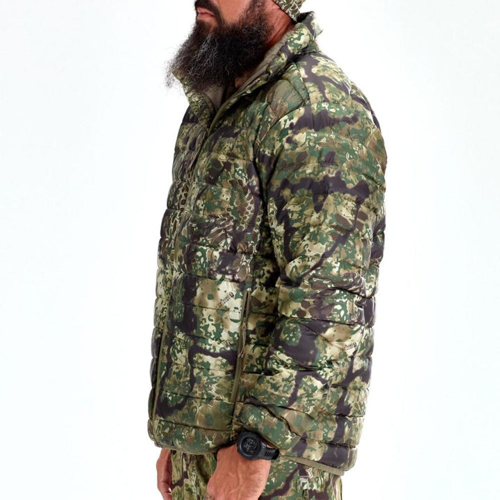 Our super warm Cirius down jacket provides backcountry hunters with a packable insulation layer for added warmth during long periods of stationary activities. Cirius is treated with¬†Kryptek Defender‚,¬†a highly-water resistant treatment that offers an extra level of moisture protection for down garments exposed to wet environments. Kryptek Defender‚ helps prevent down from clumping and losing its loft, maintaining the water repellency for the life of the garment and maximizing its ability to keep you warm and comfortable. Specifically designed to provide lightweight exceptional warmth even in damp conditions, Cirius¬†stays drier longer and maintains loft better than other down jackets, making it the perfect insulated jacket for a variety of unpredictable weather conditions.¬†