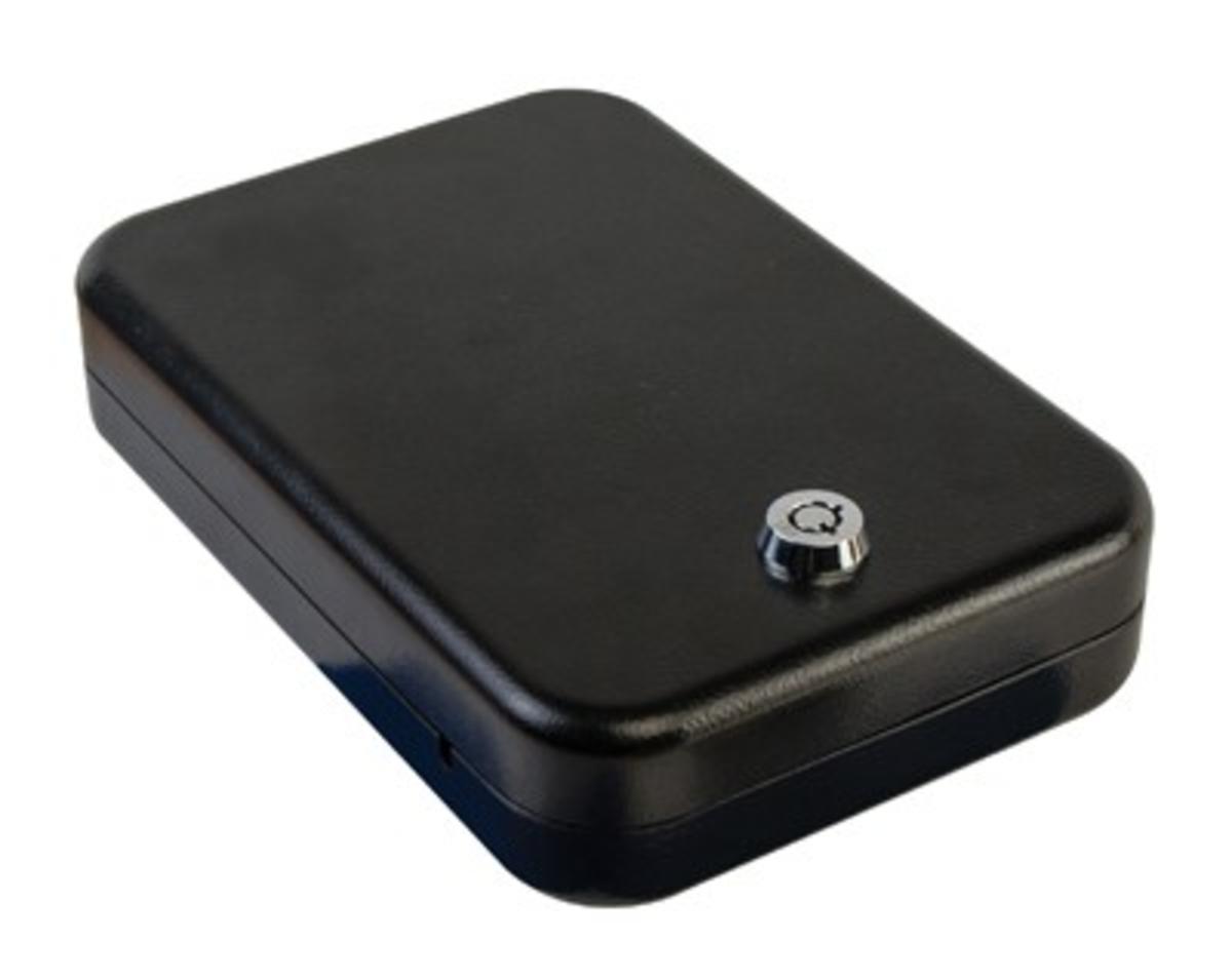 Store your handgun with confidence using the Lockdown Compact Handgun Vault. With a new and improved security lock and 16/19 gauge sides/walls, this vault is perfect for home storage. Travel often? Slip the vault into a bag or purse and easily transport from place to place, while always having the key on hand for easy access. This pistol vault is California Department of Justice approved and meets TSA airline requirements. The large vault also includes a coated-steel cable lock for added security.