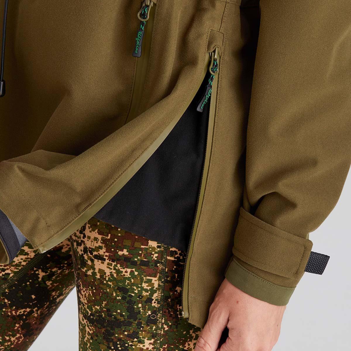 Fully taped seams.Silent.Hip Zips.Two zipped hand pockets.Zipped chest pocket.