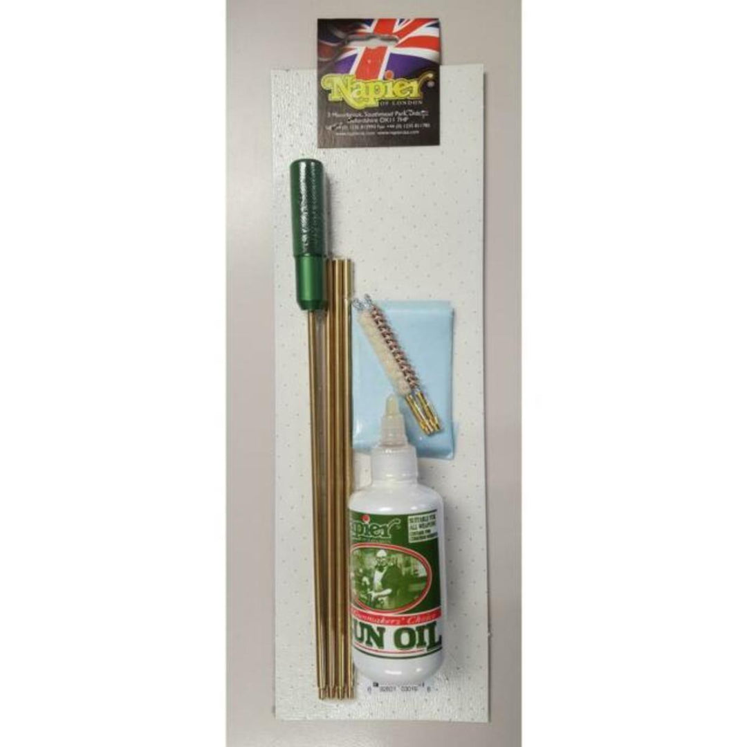 Supplied with a brass section 4 piece Rod, a sample of Rifle Clean, 5 Field Patches, 70ml of gun oil and loops to take all of your favourite tools. Note: this kit does not contain a brush or mop as it is not for a specific calibre, and is for .30 plus. Simply select the tools required from our extensive range.