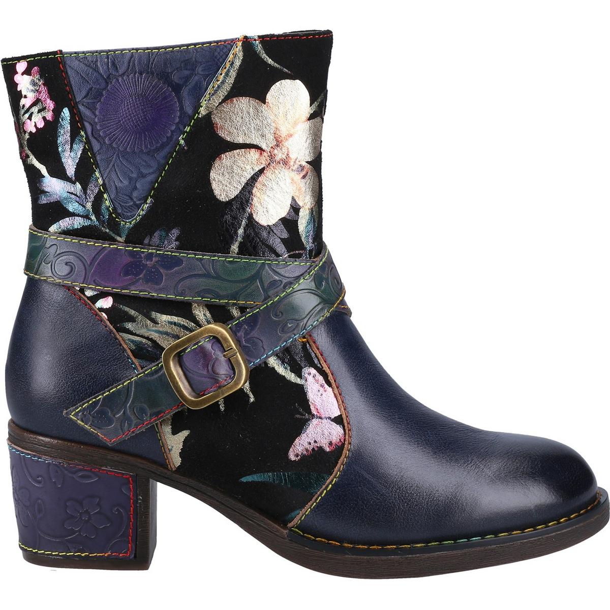 A funky, floral biker boot. Featuring a printed leather upper and block heel.