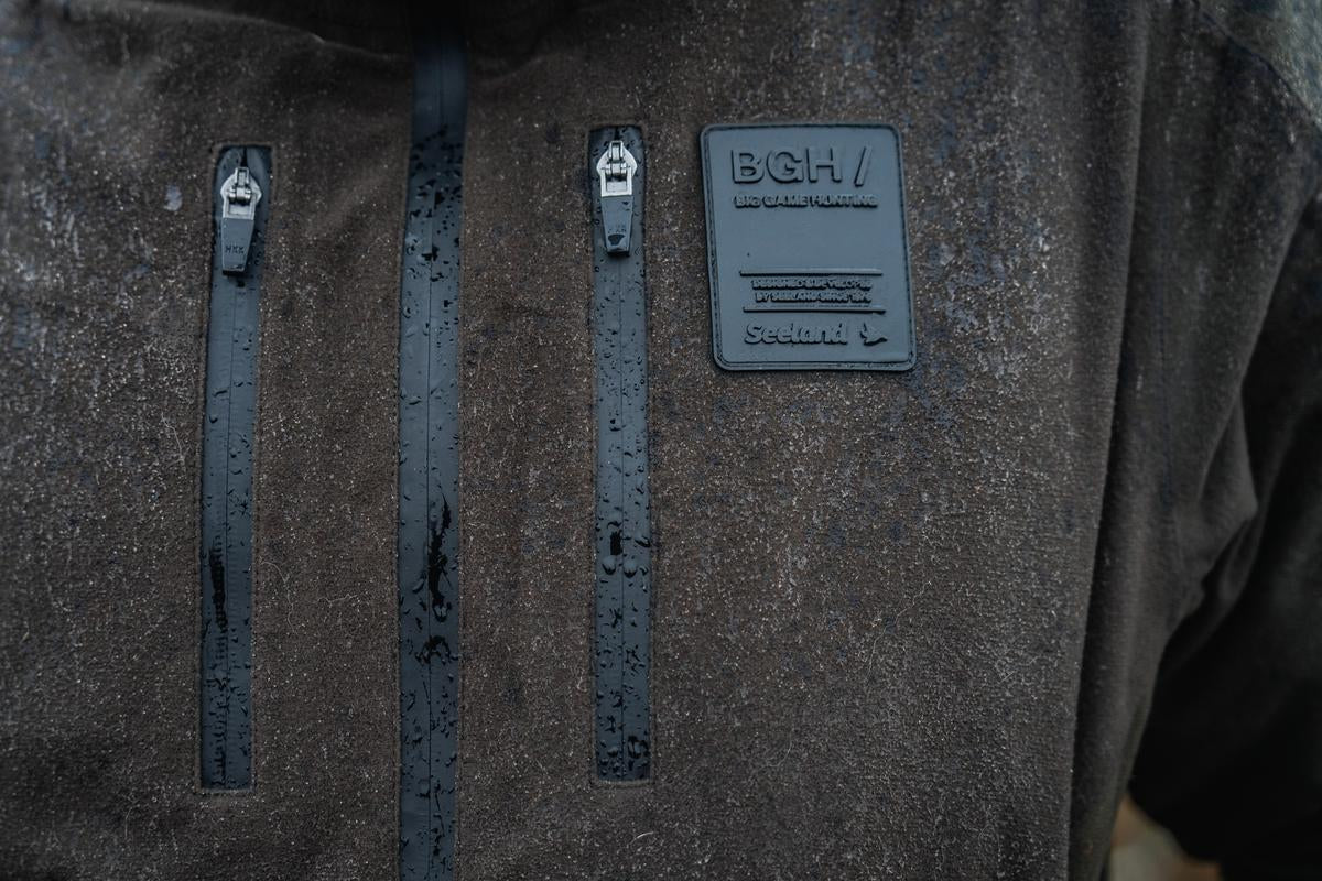 Our new Chaser BGH Smock is designed specifically for Scandinavian Big Game Hunting, made in collaboration with our ambassador, professional Swedish hunter Hampus Karlsson. The hunting smock is built with a multitude of functionalities and full protection against the elements while ensuring optimal mobility. The extended length and scalloped hemline keep you shielded from wind and rain, while the brushed tricot main fabric allows for quiet, unrestricted movement. The smock is fully waterproof. It’s constructed with a full membrane and taped seams with water-repellent zippers. The shoulders have anti-slip print. The adjustable, fixed hood offers a customizable fit and the double-sided, extra-long zippers not only provide easy access but also serve as effective ventilation. The Chaser Smock has plenty of storage with two radio pockets – one with a lens cloth – a front pocket with a cartridge holder and phone pocket as well as a spacious game pocket for extra storage. Handwarmer pockets with magnetic closures and soft brushed tricot lining provide comfort in cold conditions. With adjustable cuffs, internal storm cuffs and a breathable mesh lining, this smock is both durable and comfortable. Its versatile design prevents snagging and enhances mobility, while large pockets allow easy access to binoculars, GPS and radios. Whether in harsh weather or on an active hunt, the Chaser Smock ensures you’re fully protected and prepared.