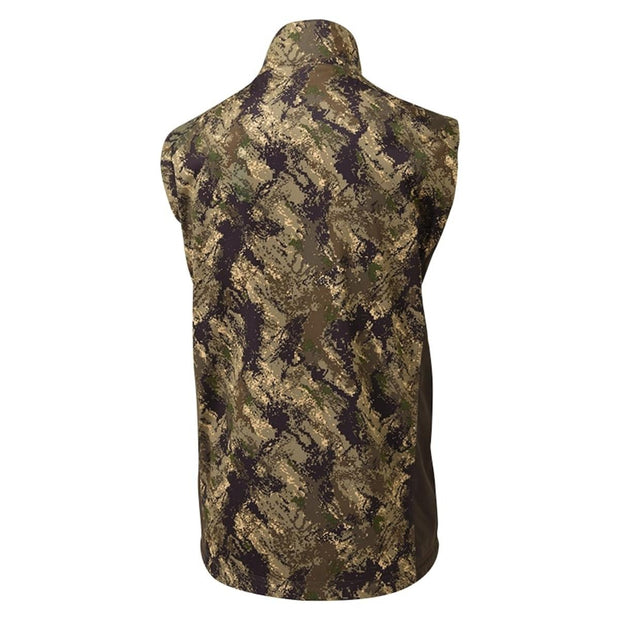 A non-reversible Vest shell, Shoottex membrane, Hunt Lite 3L design and a front pocket with a rubber audio/ radio antenna access port.