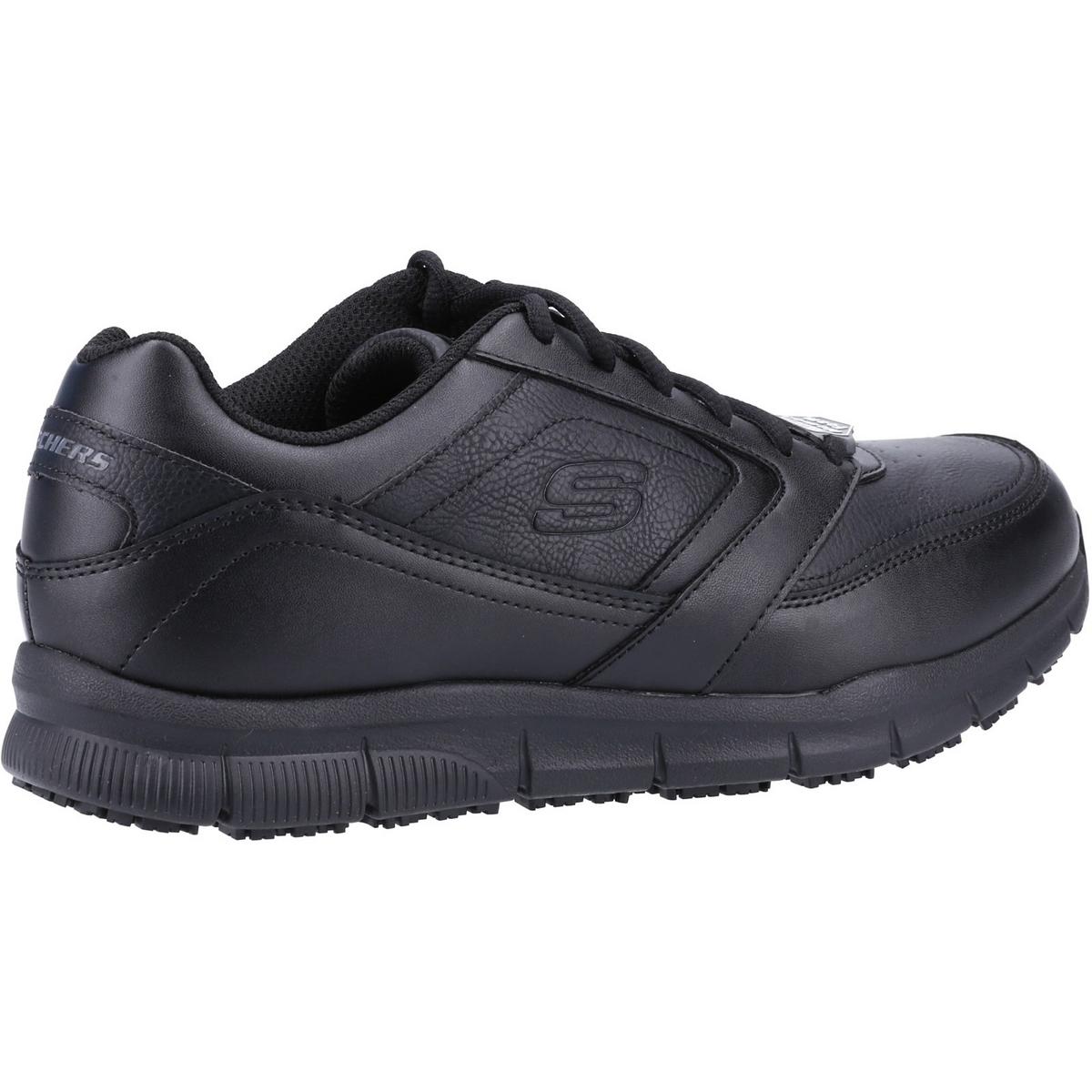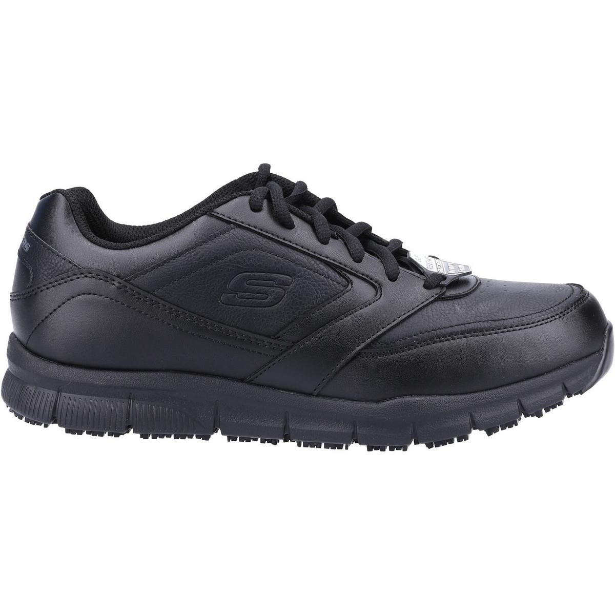 Ensure your comfort, safety and good looking style wearing the SKECHERS Work Relaxed Fit: Nampa SR shoe. Leather-textured synthetic upper in a lace up sporty casual comfort work slip resistant sneaker with stitching accents and Memory Foam insole.