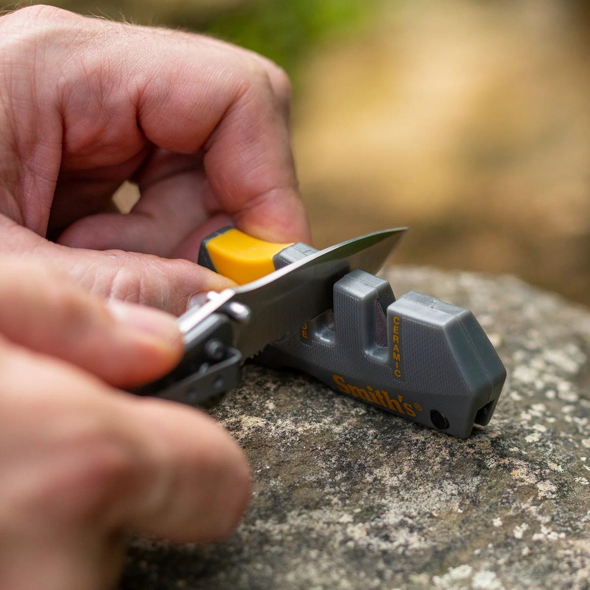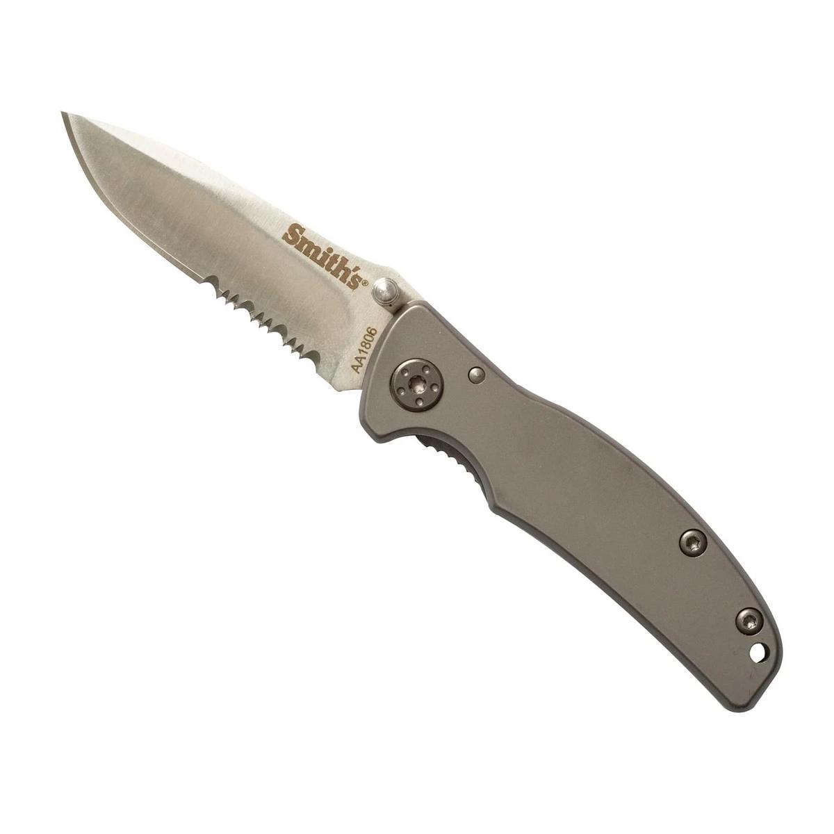 Smith's Titiania-I 2.2" drop point blade features 3/4" of serrations with a rugged satin finish . The razor sharp blade is made of precision heat treated 400 series stainless steel with an ambidextrous thumb screw for easy opening. Equipped with rugged titanium handles and sturdy frame lock design secures the blade open during use. The Furrow includes a pocket clip.